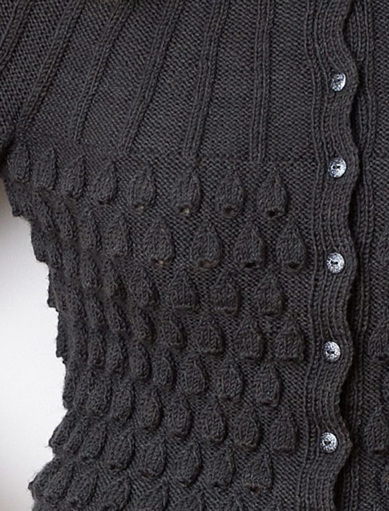 Material: Tradi Merino (65% Merinoull, 25% Polyamid, 10% Kashmir) Storlek: S 36_38 ( M 40 -42) L 44 . 46 Rundsticka: 3,5 mm Materialåtgång: 8 (9) 10 nystan av färg 13. 8 knappar