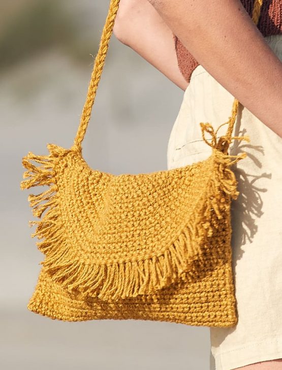 Material: Ouzo (70% Jute, 30% bomull) Storlek: en storlek Virknål: 5 mm Materialåtgång: 2 nystan av färg 43