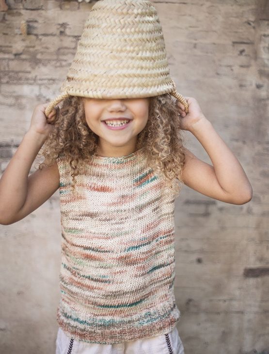 Material: Natura Fizz (100% Bomull) Storlek: 4 (6) 8 (10) 12-14 år Stickor: 4,5-5 mm + markörer Materialåtgång: 1 (2) 2 (2) 3 nystan av färg 03