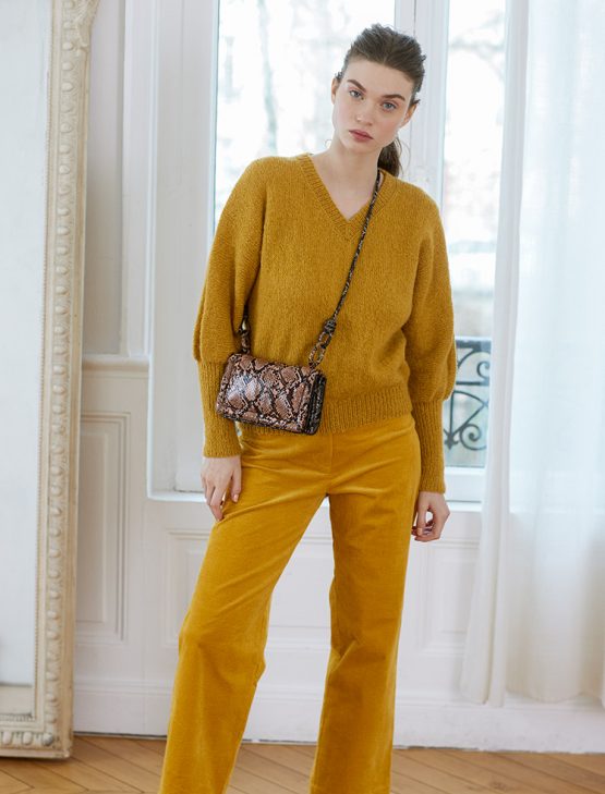 Material: Innocence (49% Ull, 34% Alpacka, 17% återvunnet silke) Storlek: 34/36 (38/40) 42/44 (46/48) 50/52 Stickor: 3,5 mm Materialåtgång: 6 (6) 7 (7) 7 nystan av färg 43 Markörer