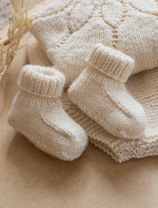 Material: Fidele (50 % Ull, 50% Bomull) Storlek: nyfödd ( 3 mån) 6 mån Stickor: 2,5-3 mm Strumpstickor: 3 mm Materialåtgång: 1 (1) 1 nystan av färg 02 maskhållare