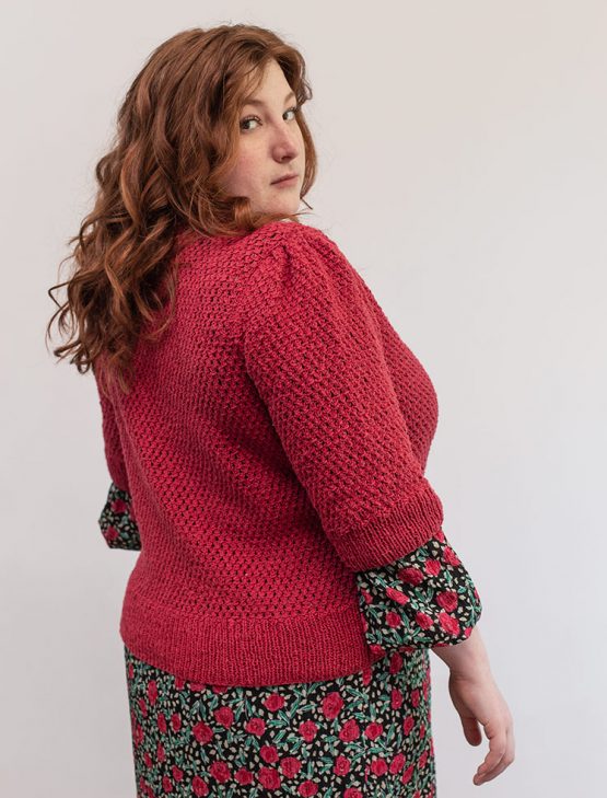 Material: Geisha(100% Silke) Storlek: 42/44 (46/48) 50/52 (54-56) 58-60 Stickor: 3 mm Materialåtgång: 6 (6) 7 (8) 8 nystan av färg 63 markörer och maskhållare Knappar: 4 st med dia 18 mm